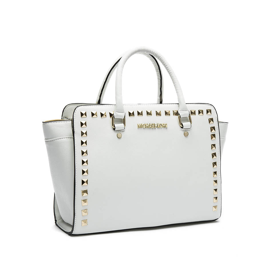 Michael Kors Selma Medium Studded Saffiano Leather Satchel