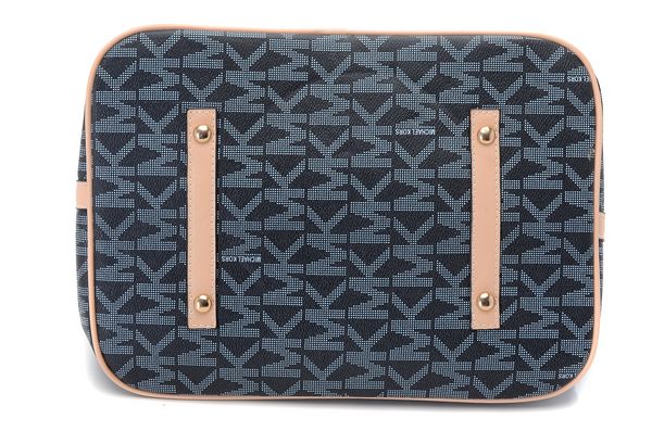 * Blue leather with allover khaki MK logo detail.