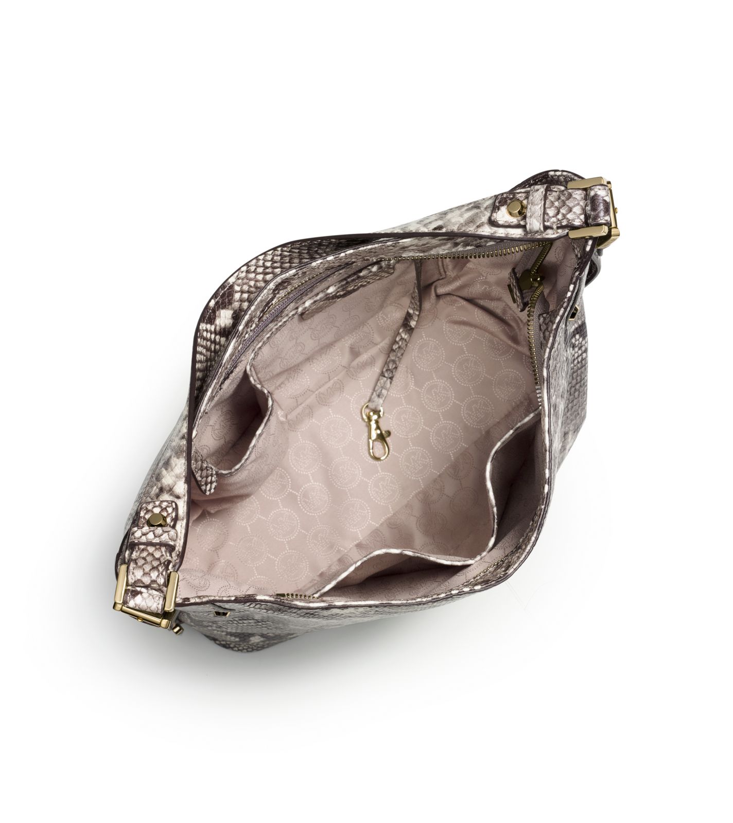 Exclusively Ours in the U.S. in Michael Kors stores and on michaelkors.com until 10/31/15. We've crafted the spacious, carry-everywhere silhouette of the Bedford in fierce snake-embossed leather for an effortless dose of texture and pattern. This elegant, eye-catching style will add exotic appeal to your every day.