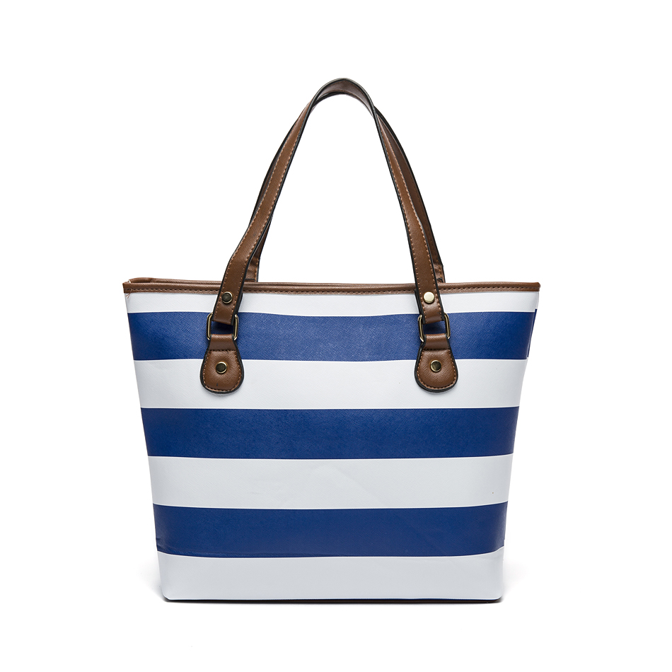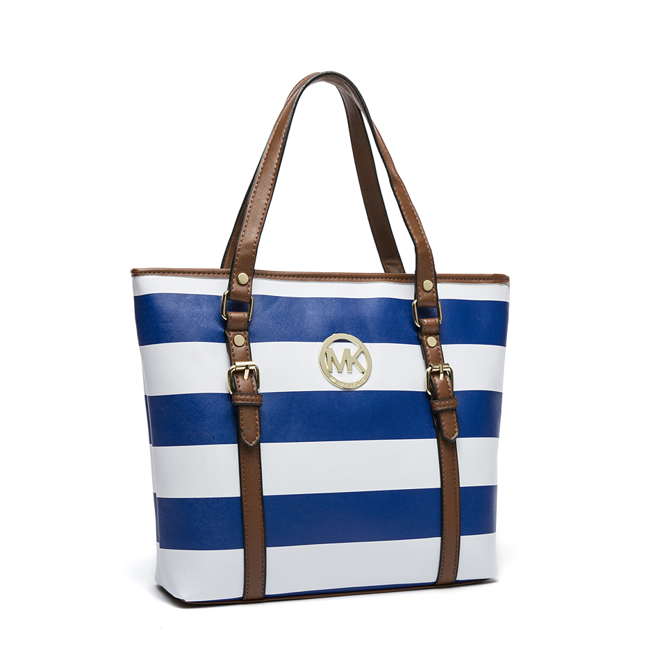 Michael Kors Stripe Jet Set Travel Saffiano Leather Top Zip Tote