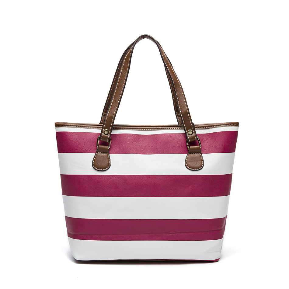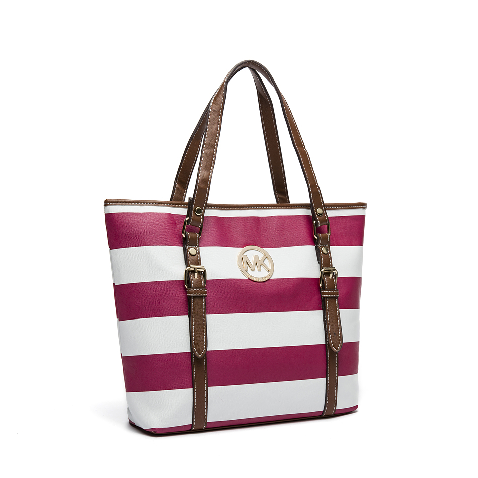 Michael Kors Stripe Jet Set Travel Saffiano Leather Top Zip Tote