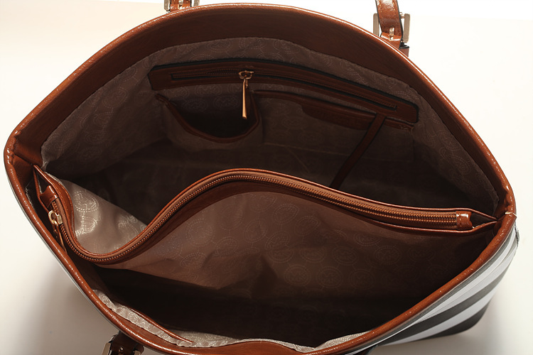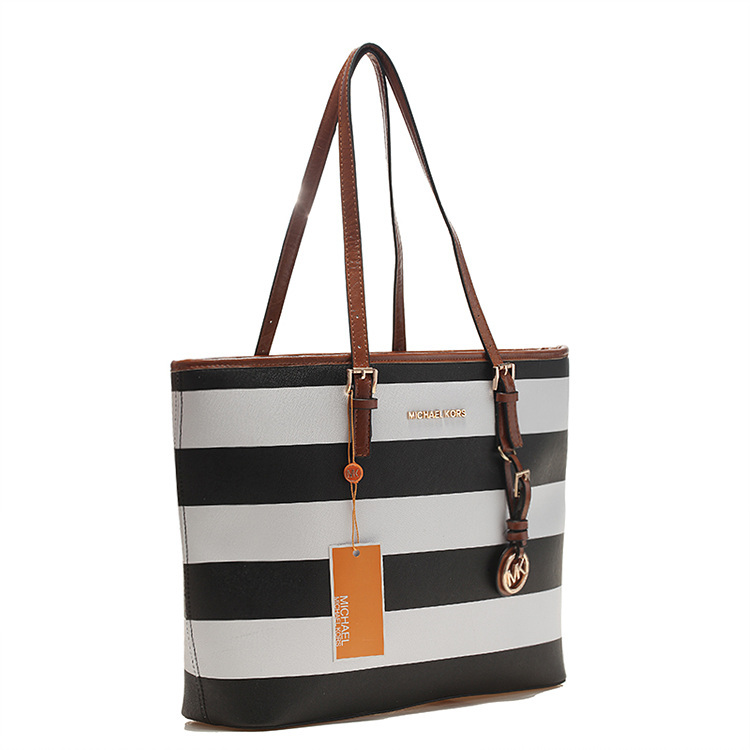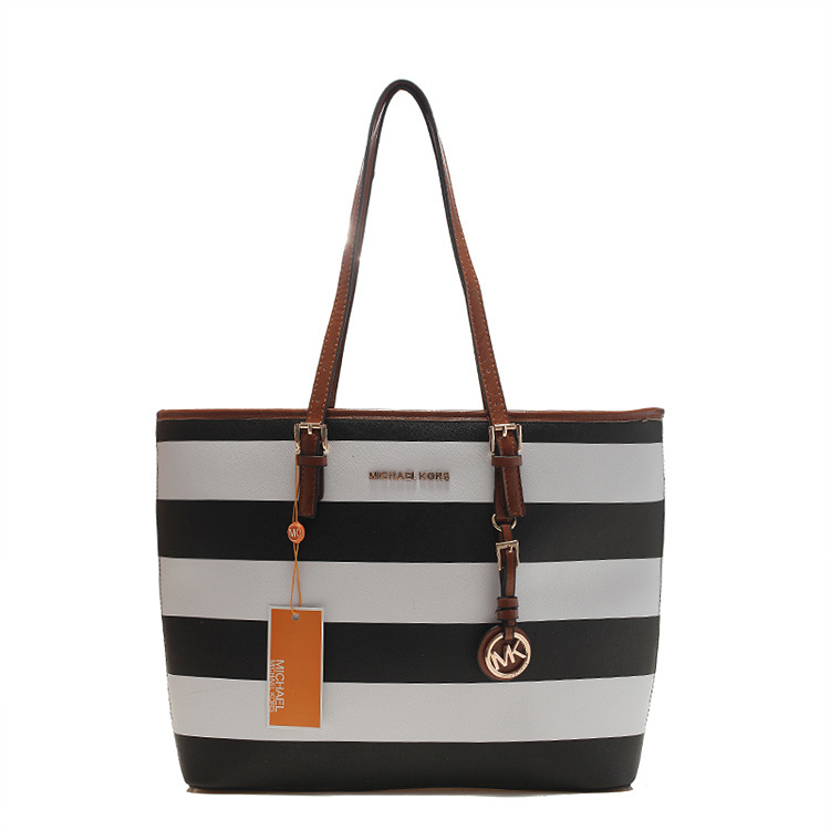 Michael Michael Kors Jet Set Travel Large Saffiano Leather Tote Black/White 853