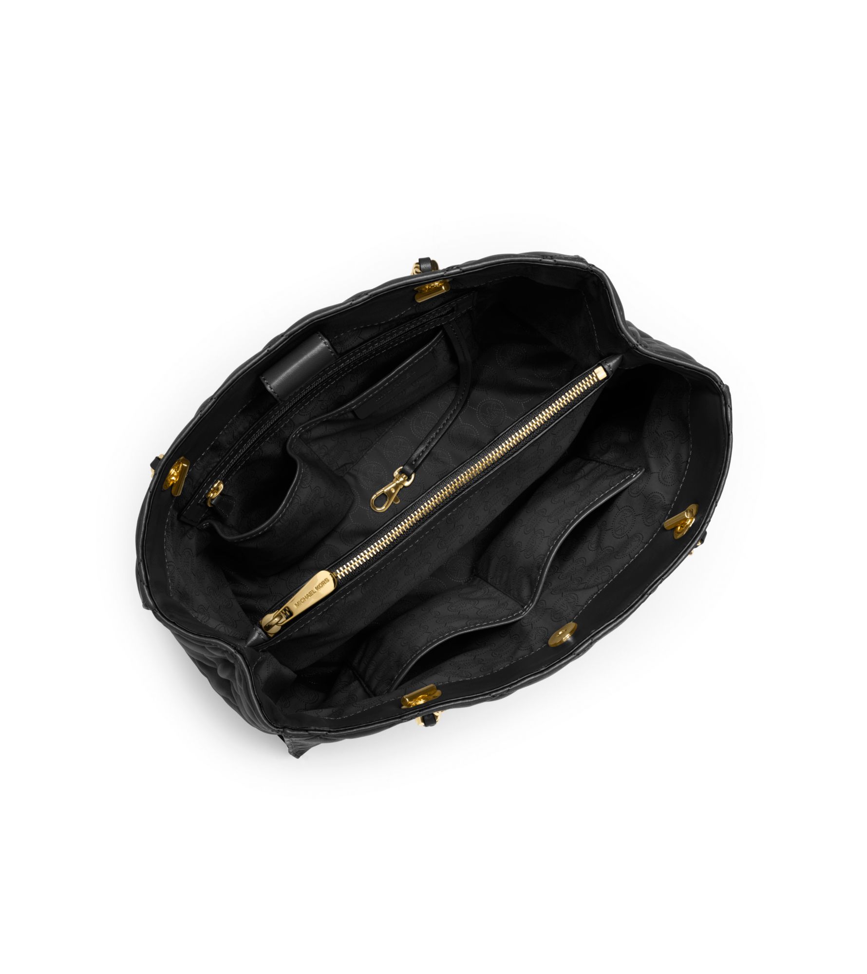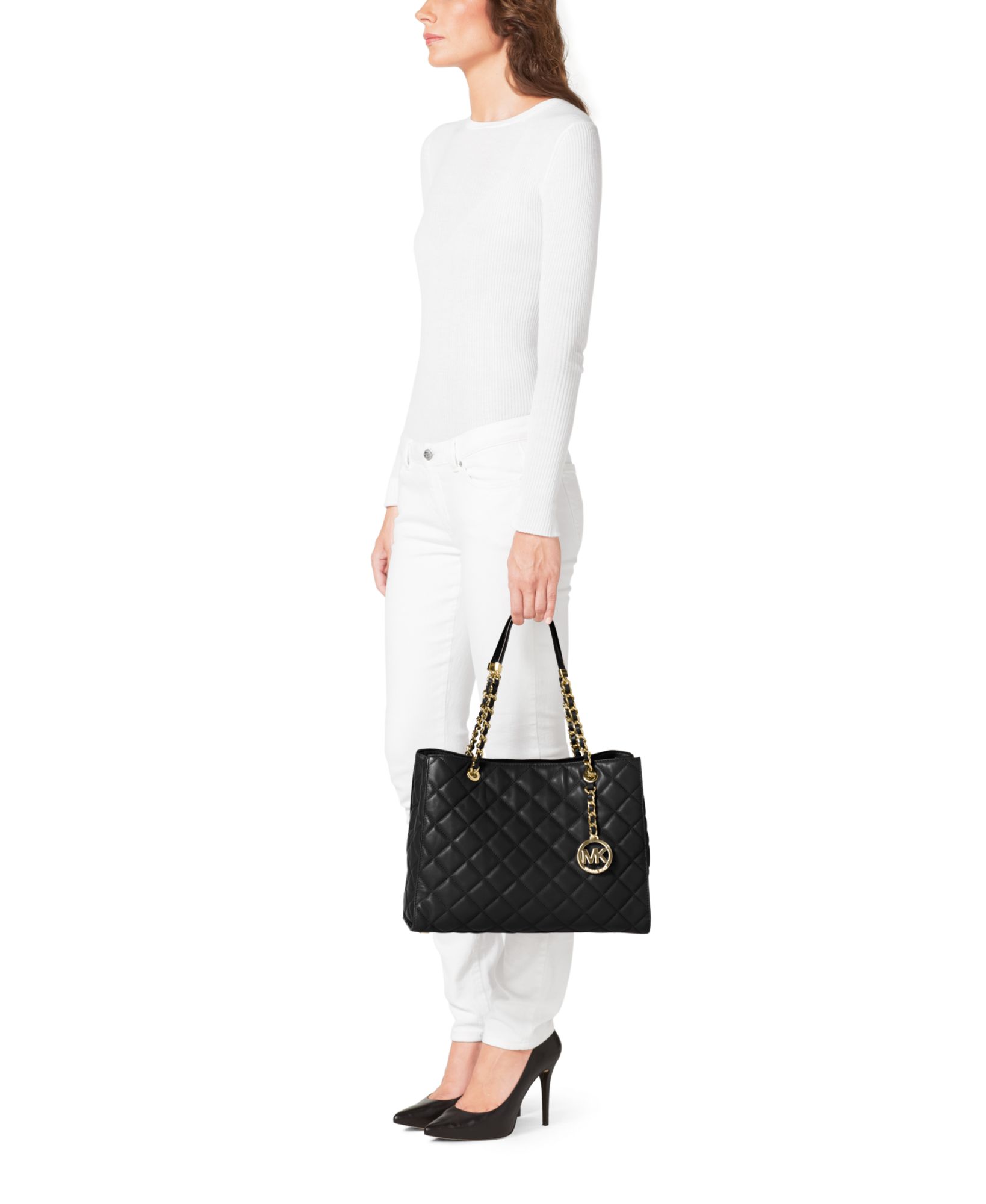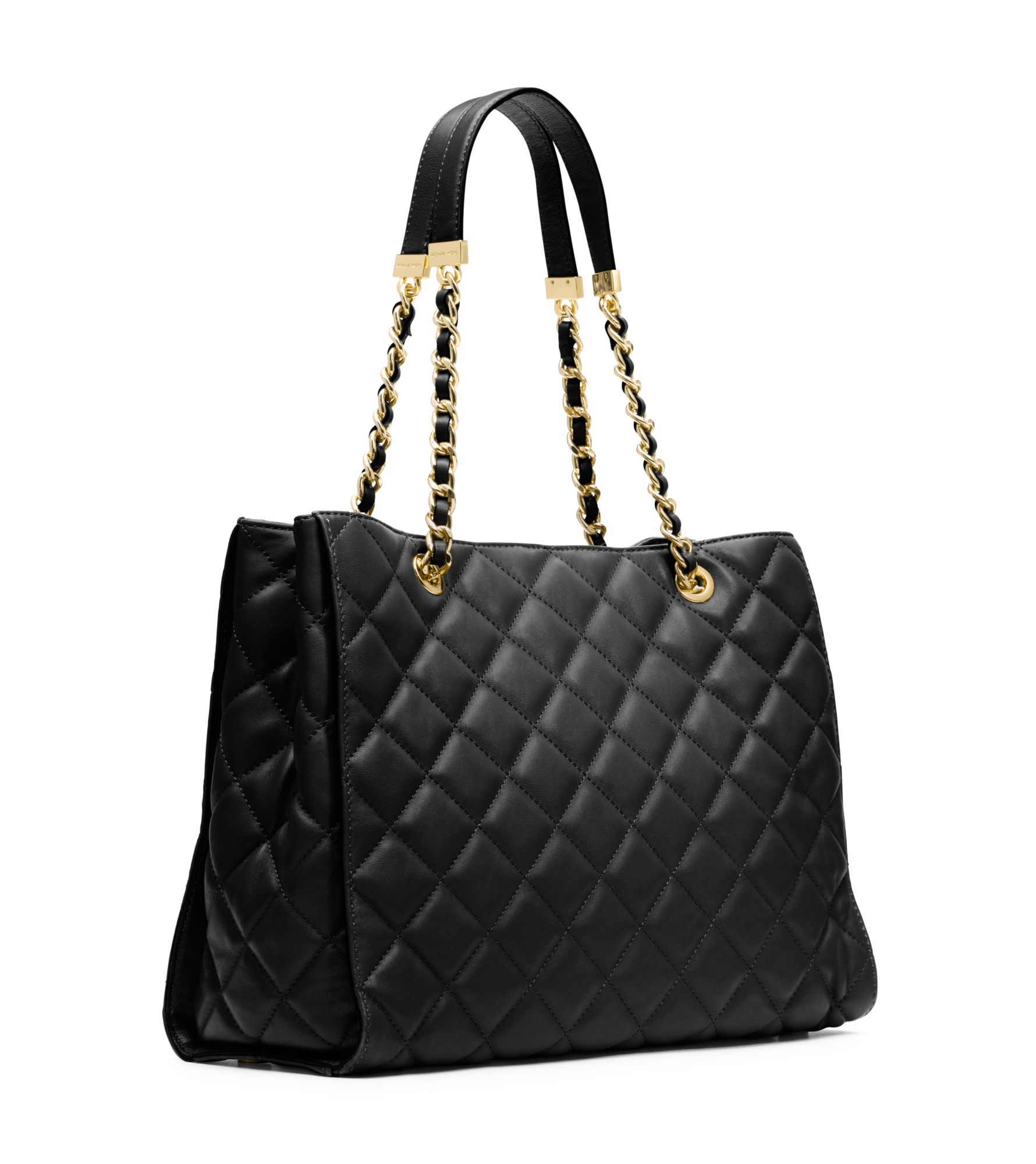 Unapologetically ladylike, our quilted Susannah tote extends polished panache to every look. Quilted lamb leather balances beautifully with sleek chain straps and our high-shine logo charm. Office-bound to off-duty, this timeless piece offers a poised, pulled-together statement.