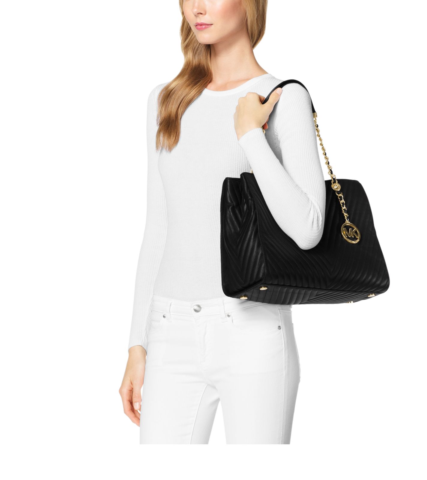 Unapologetically ladylike, our chevron-quilted Susannah tote extends polished panache to every look. Quilted lamb leather balances beautifully with sleek chain straps and our high-shine logo charm. Office-bound to off-duty, this timeless piece offers a poised, pulled-together statement.