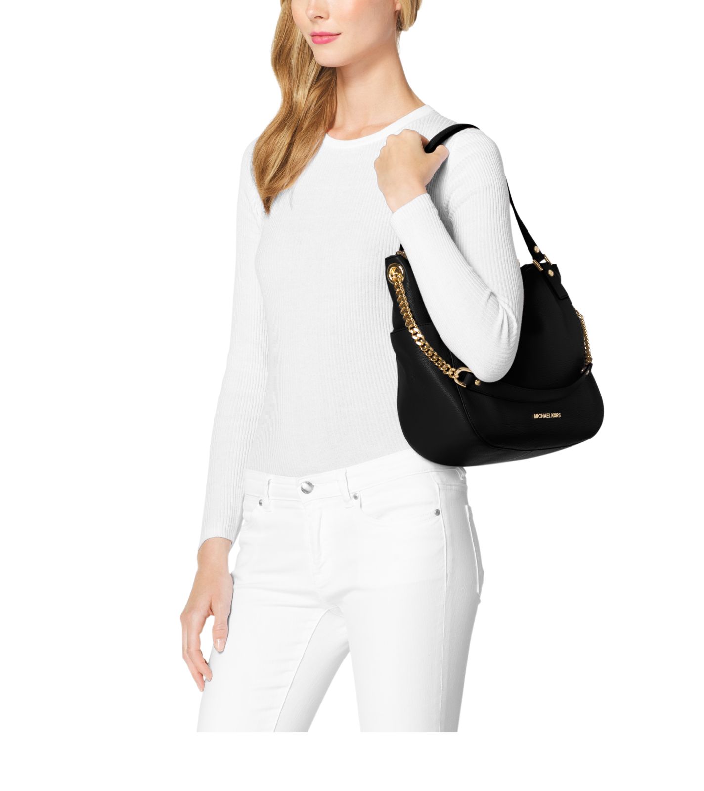 Designed in slouchy, sumptuous leather, our Campbell tote is an effortlessly versatile choice. Glamorous details like gilded hardware and draped side chains elevate this timeless piece. Workday or weekend, slip it over your shoulder for a chic finish to your look.