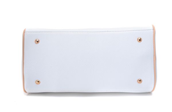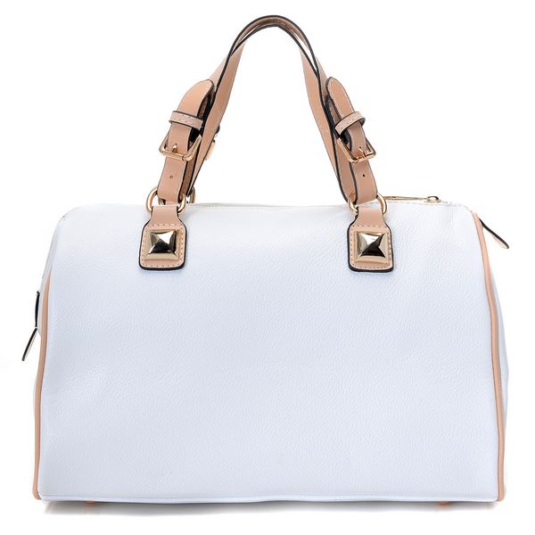 * Buckled top handles with pyramid stud detail; 13 1/2" drop.