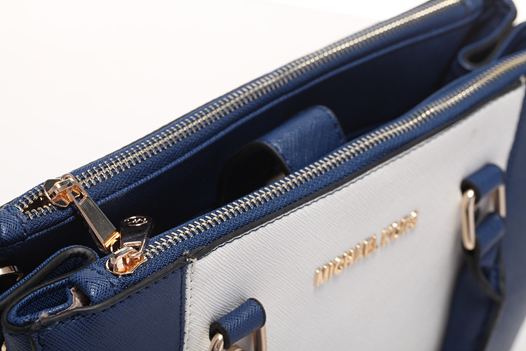 Michael Kors Sutton Large Color Block Leather Satchel Blue