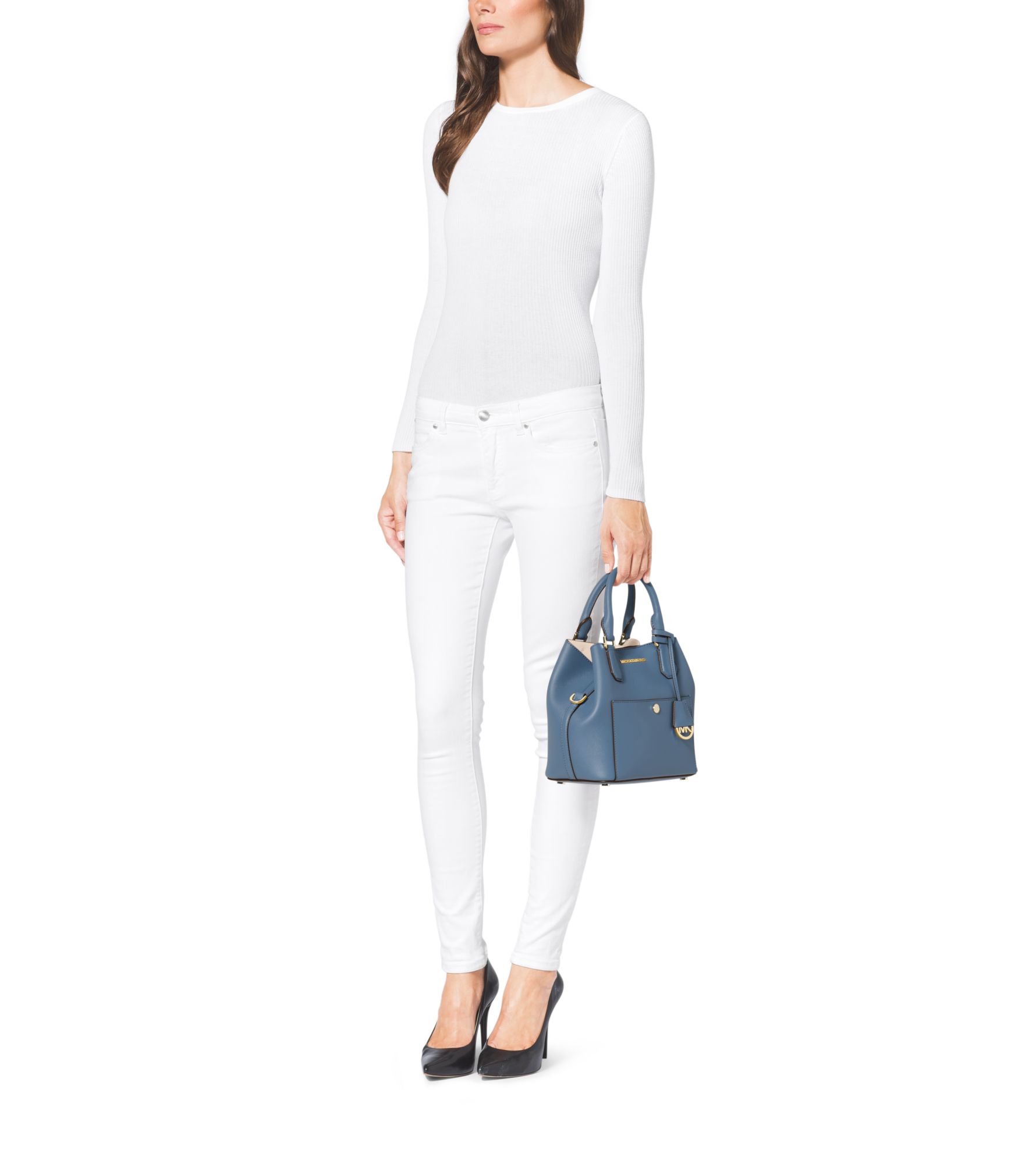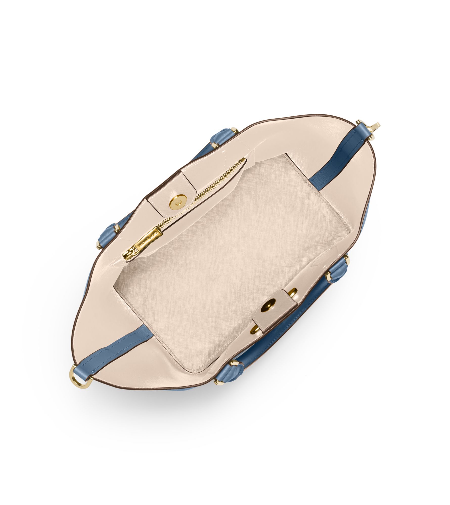 Exclusively Ours in the U.S. in Michael Kors stores and on michaelkors.com until 10/31/15. The season’s byword for glamorous and on-the-go? Our Greenwich handbag. Balancing a polished sensibility with a laid-back ease, this structured design features top handles, a removable shoulder strap and signature hardware, while a contrast-color interior offers chic juxtaposition. Carry it in the crook of your arm from commute to cocktails and everywhere in between.