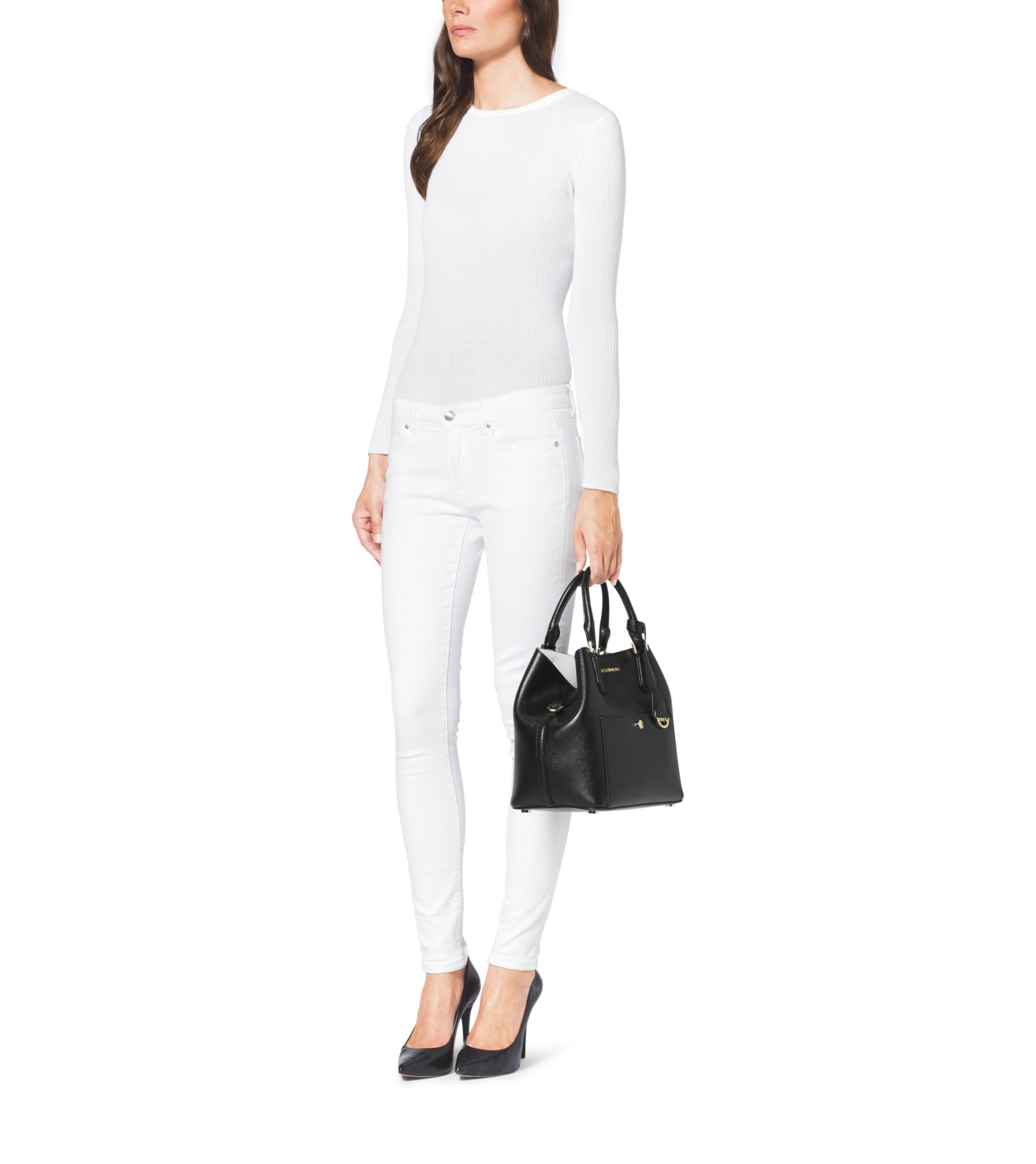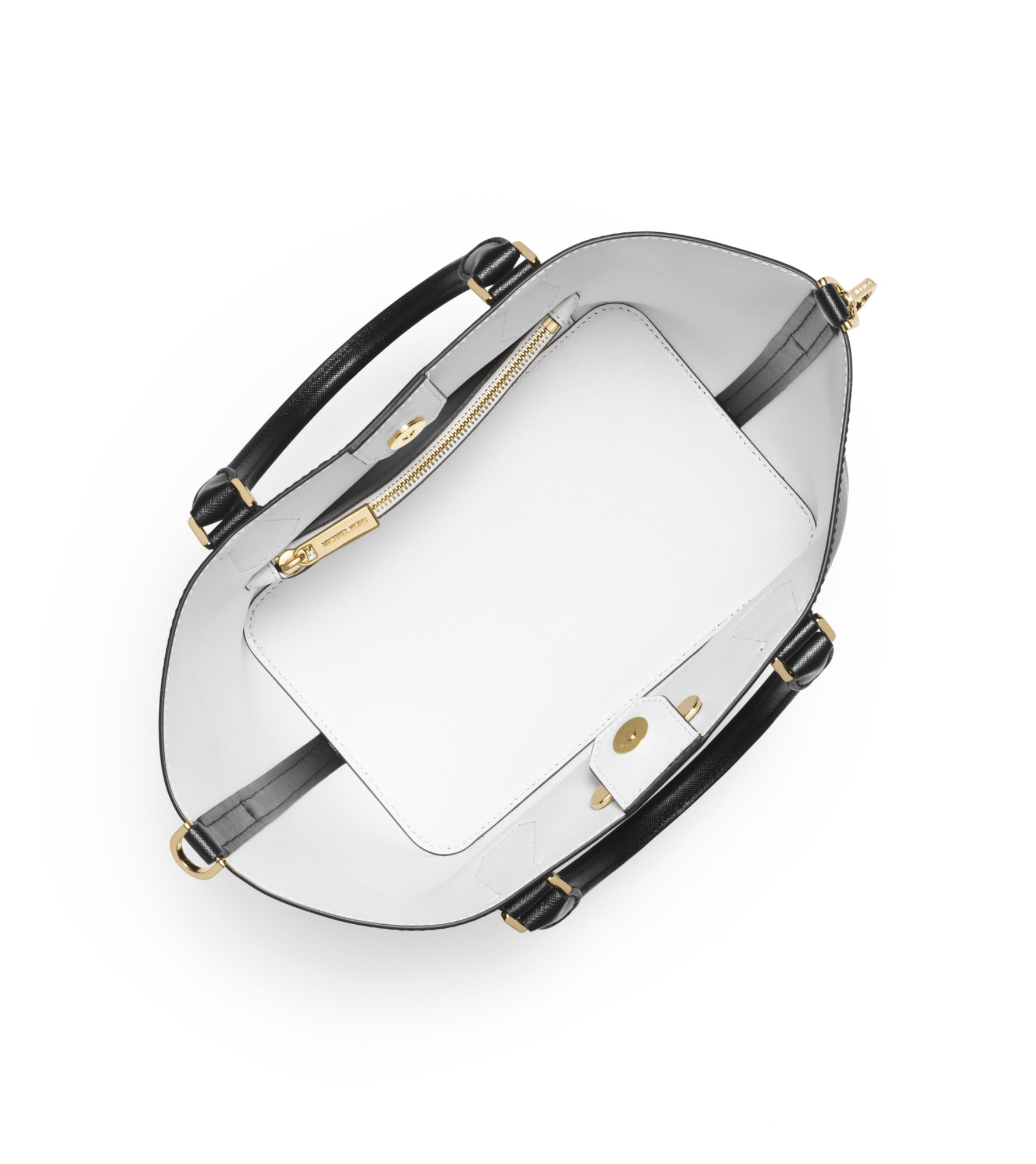 Exclusively Ours in the U.S. in Michael Kors stores and on michaelkors.com until 10/31/15. The season’s byword for glamorous and on-the-go? Our Greenwich handbag. Balancing a polished sensibility with a laid-back ease, this structured design features top handles, a removable shoulder strap and signature hardware, while a contrast-color interior offers chic juxtaposition. Carry it in the crook of your arm from commute to cocktails and everywhere in between.