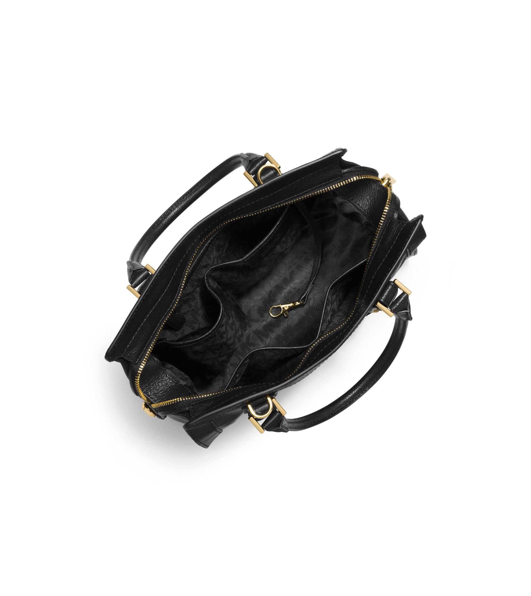 Exclusively Ours in the U.S. in Michael Kors stores and on michaelkors.com until 10/31/15. A sophisticated wardrobe needs a sophisticated handbag, and our beautifully crafted Collins satchel is just the ticket. Its clean, smart silhouette with a polished top zipper is rendered in sumptuous leather and framed with subtly contrasting trim for a modern feel. With a spacious interior and refined exterior, this design is a timeless essential with true staying power.