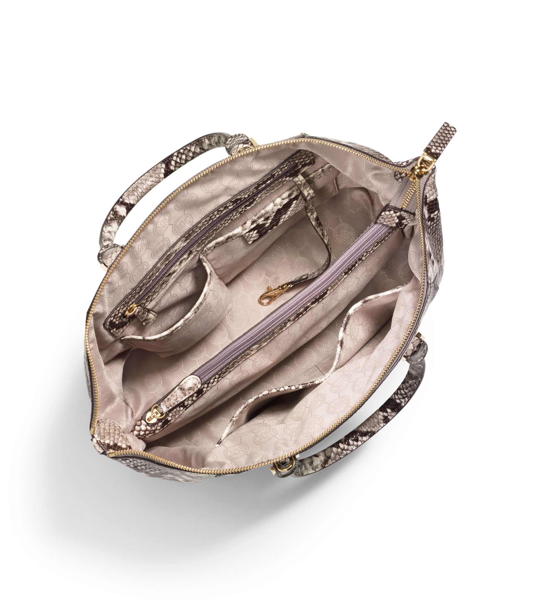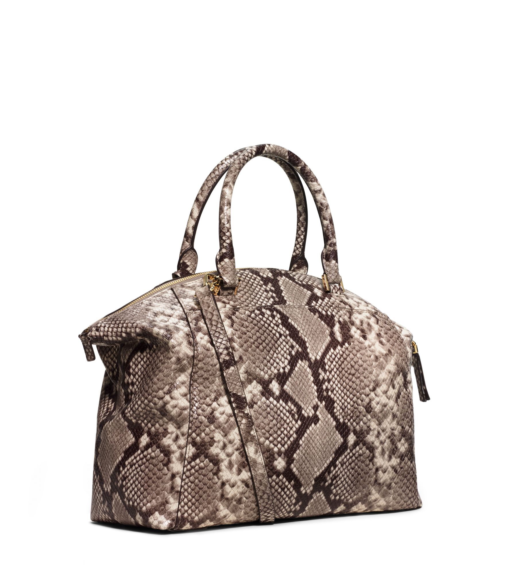 Michael Kors Colette Large Embossed Leather And Canvas Satchel