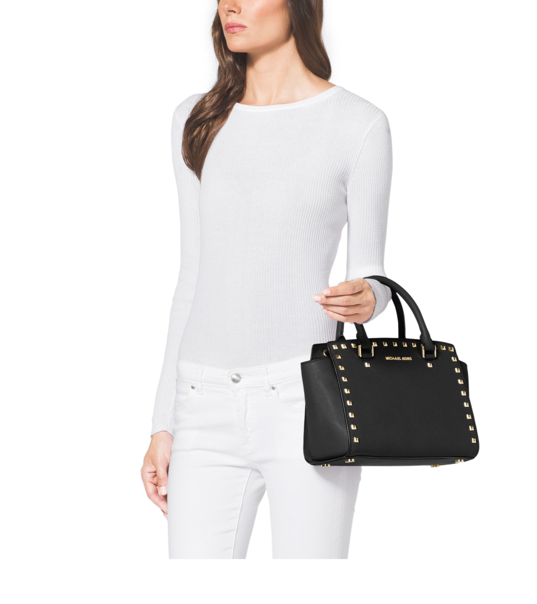 Michael Kors Selma Medium Studded Saffiano Leather Satchel
