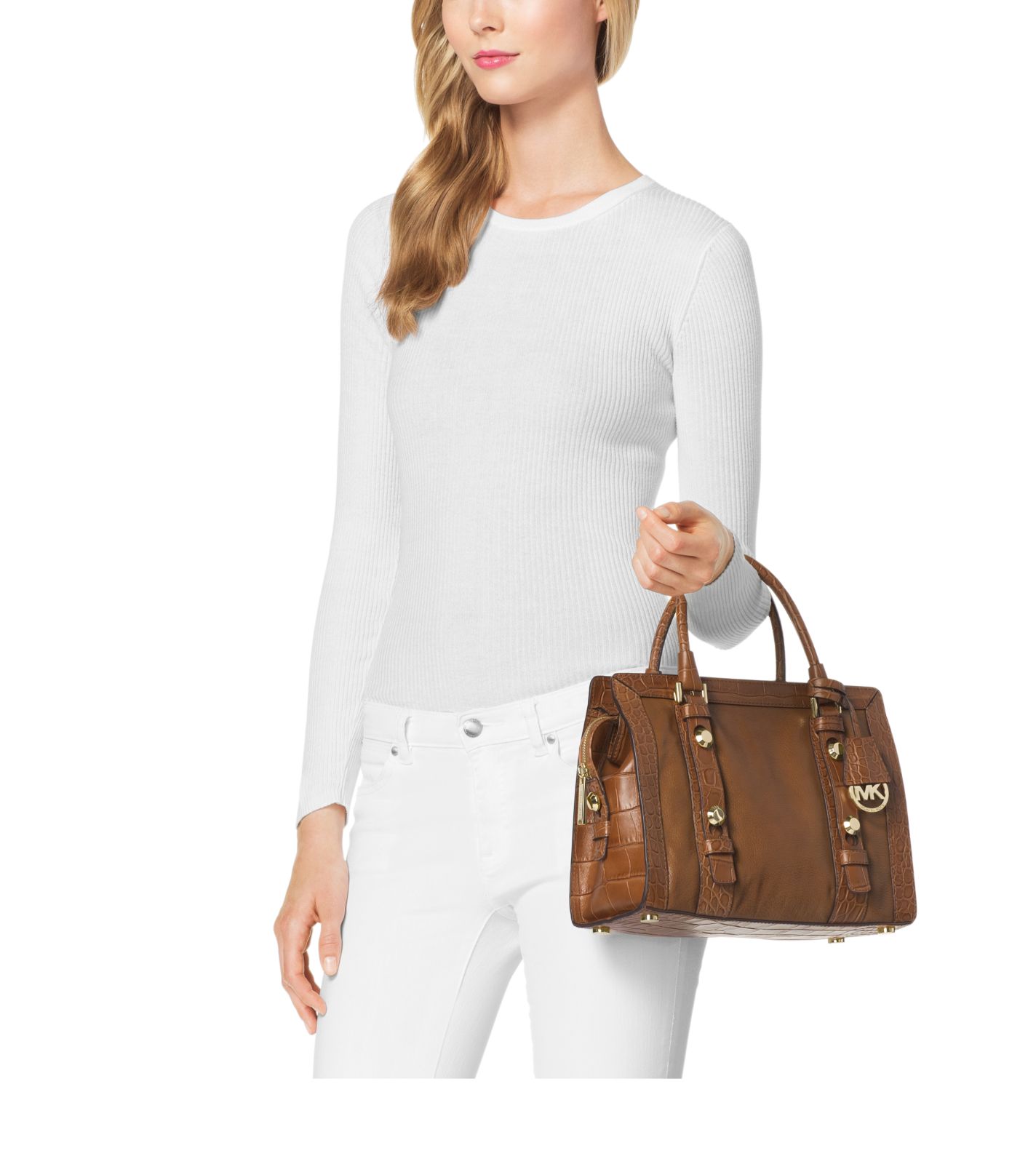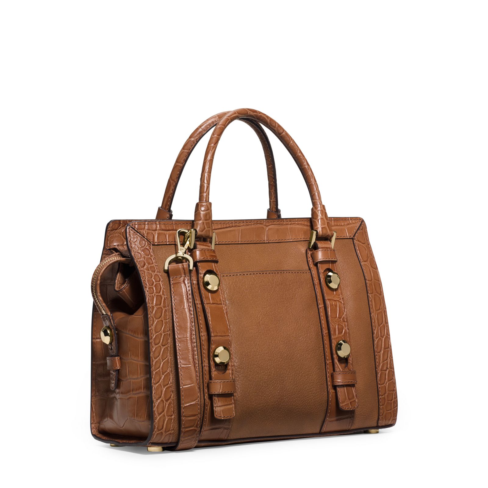 Exclusively Ours in the U.S. in Michael Kors stores and on michaelkors.com until 10/31/15. The croc-embossed leather trim of this classic satchel gives it a tactile touch, while the tonal sensibility keeps the look sleek and elevated. Our spacious Collins bag is the most sophisticated way to add just a hint of the exotic to your everyday. Carry it by its top handles for professional polish or sling the crossbody strap over your shoulder for weekend chic.