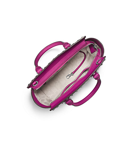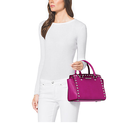 Our Selma satchel makes a case for elegant embellishment. Trimmed with high-shine studs, our much-loved must-have has an edgy advantage, while the simple, structured shape promises a sensible statement season after season.