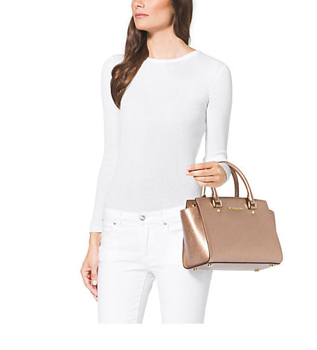 Michael Kors Selma Medium Studded Saffiano Leather Satchel