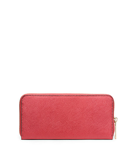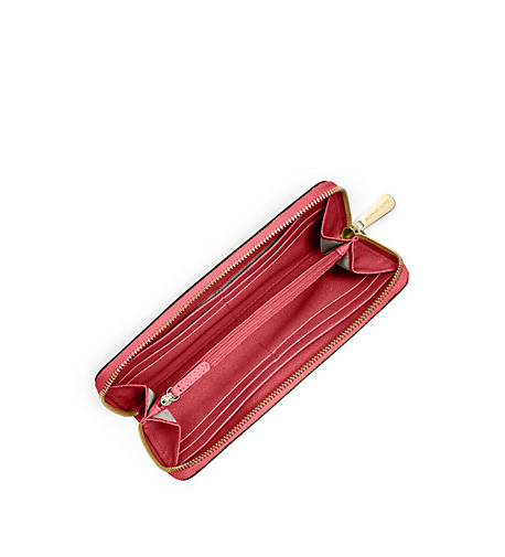 Sleek, simple, impossibly chic—our zip-around wallet is practical luxury at its finest. In matte Saffiano leather, the continental silhouette features the Michael Kors letter logo and a high-shine zipper, opening up to a variety of pockets and card slots. Throw this wallet in your favorite bag of the moment, or let it shine solo as a clutch.