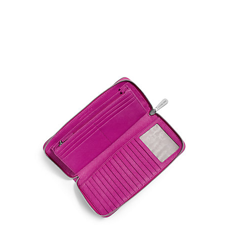 Sleek, simple, impossibly chic—our zip-around wallet is practical luxury at its finest. In matte Saffiano leather, the continental silhouette features the Michael Kors letter logo and a high-shine zipper, opening up to a variety of pockets and card slots. Throw this wallet in your favorite bag of the moment, or let it shine solo as a clutch.