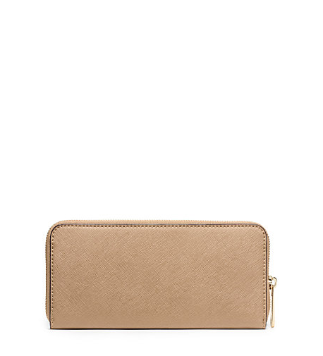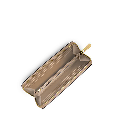 Sleek, simple, impossibly chic—our zip-around wallet is practical luxury at its finest. In matte Saffiano leather, the continental silhouette features the Michael Kors letter logo and a high-shine zipper, opening up to a variety of pockets and card slots. Throw this wallet in your favorite bag of the moment, or let it shine solo as a clutch.
