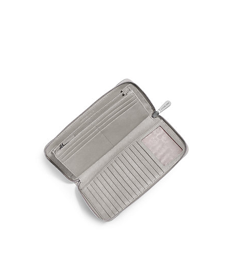 Sleek, simple, impossibly chic—our zip-around wallet is practical luxury at its finest. In matte Saffiano leather, the continental silhouette features the Michael Kors letter logo and a high-shine zipper, opening up to a variety of pockets and card slots. Throw this wallet in your favorite bag of the moment, or let it shine solo as a clutch.