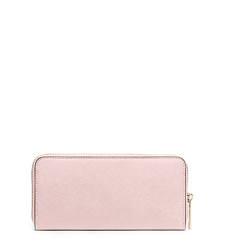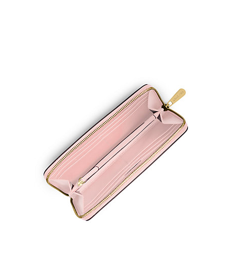 Sleek, simple, impossibly chic—our zip-around wallet is practical luxury at its finest. In matte Saffiano leather, the continental silhouette features the Michael Kors letter logo and a high-shine zipper, opening up to a variety of pockets and card slots. Throw this wallet in your favorite bag of the moment, or let it shine solo as a clutch.