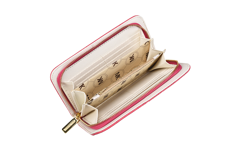 Sleek, simple, impossibly chic—our zip-around wallet is practical luxury at its finest. in elegant logo-print canvas, this continental silhouette features the Michael Kors logo plaque and a high-shine zipper, opening up to a variety of pockets and card slots. Throw this wallet in your favorite bag of the moment, or let it shine solo as a clutch.