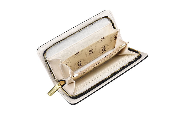 Sleek, simple, impossibly chic—our zip-around wallet is practical luxury at its finest. in elegant logo-print canvas, this continental silhouette features the Michael Kors logo plaque and a high-shine zipper, opening up to a variety of pockets and card slots. Throw this wallet in your favorite bag of the moment, or let it shine solo as a clutch.