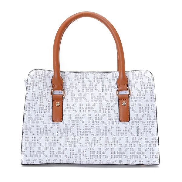 * Vanilla PVC with MK logo print and luggage leather trim.