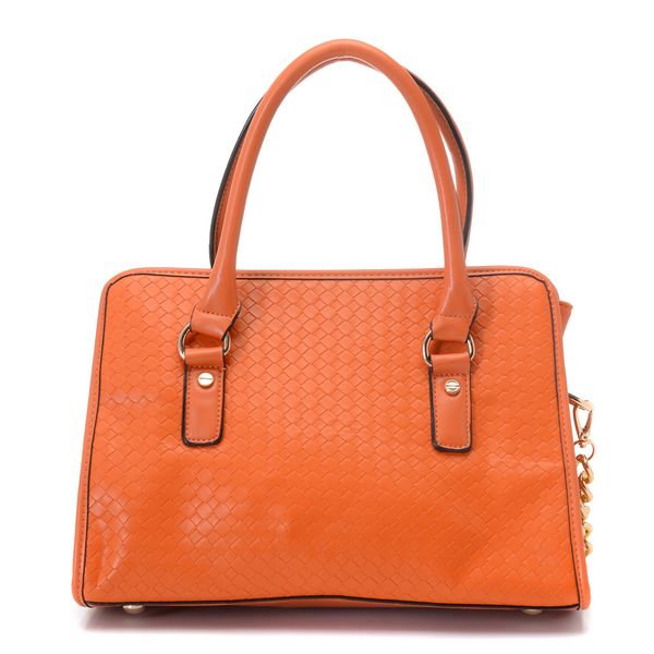 * Tangerine woven soft leather with smooth tonal trim.