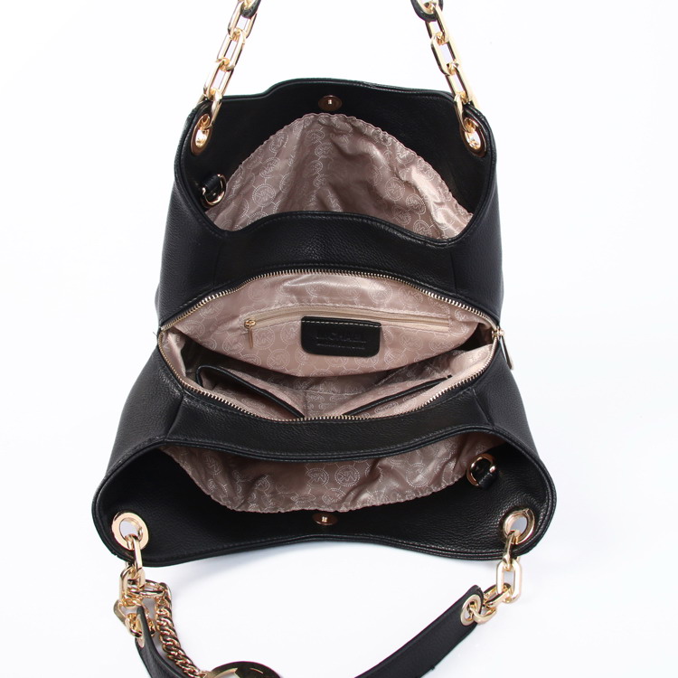 MICHAEL KORS Fulton Large Leather Shoulder Bag Black New0008